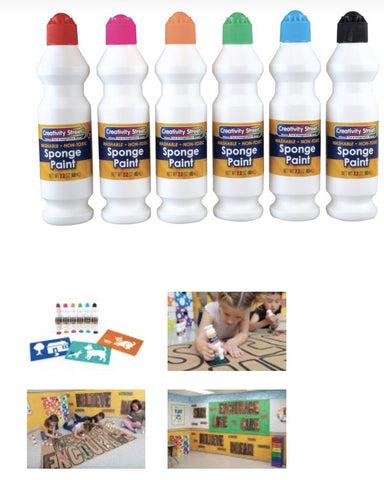 Decorate any surface with sponge paint markers. The unique, durable sponge tip and large marker barrel are perfect for young children. These 2-2/10 ounce bottles are approx. 5.25" in length with 1.25" diameter, washable and...