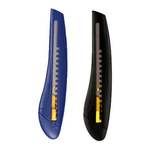 Good quality ABS plastic housing Comfortable handling Snap lock function Built in blade breaking device Uses standard blade Available in 9 mm or 18 mm Comes in Blue & Black