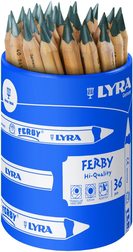 The Lyra Ferby (short 4.75") pencils feature a triangular barrel which is very beneficial for right and especially for left-handed children. ACMI AP certified safe and non-toxic, conforms to ASTM D-4236.