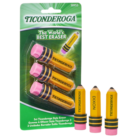 Ticonderoga® Erasers are the very best choice for home, school or office. These soft, latex-free erasers cleanly remove black pencil marks, leaving you with a clear, smudge-free surface and minimal residue. Pencil erasers shaped like...